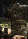 Gequälte, zerrissene Kreaturen innerhalb von großer, massiver Architektur, Begegnung in künstlichen